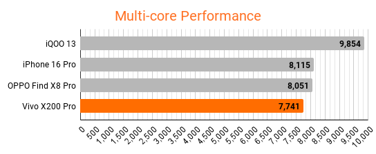 Geekbench measures how fast a processor does certain tasks. Faster the processor, higher the score.The Dimensity 9400 chipset handles daily apps and general usage effortlessly, with virtually no lag or freezing issues. It’s also well-equipped for more demanding tasks like video editing. Gaming on the X200 Pro is a delight, offering consistently smooth frame rates while maintaining stable thermals, even at the highest graphic settings.
